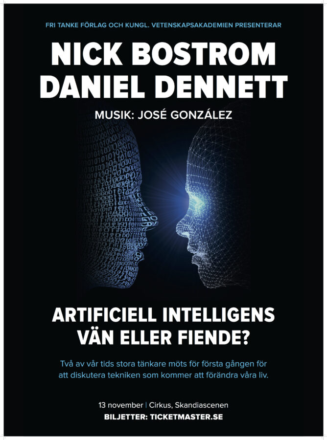 Välkommen till en omvälvande och nervkittlande kväll om medvetandets natur och möjligheterna och hoten med Artificiell Intelligens (AI). Möt två av samtidens mest briljanta tänkare, Nick Bostrom och Daniel Dennett.